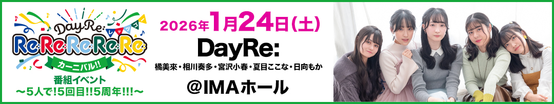 2026年1月24日(土)「DayRe:のRe:Re:Re:Re:Re:カーニバル!!番組イベント〜5人で!5回目!!5周年!!!〜」開催